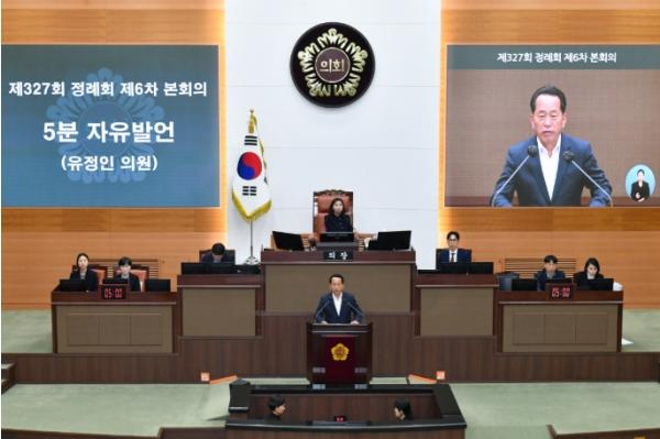 서울특별시의회 유정인 의원(국민의힘, 송파 5)은 20일에 열린 제327회 정례회 제6차 본회의 5분 자유발언에서, 위례신사선의 재정투자사업 전환과 예비타당성 조사 생략을 통한 신속한 착공을 촉구했다.