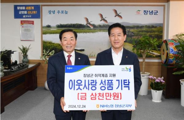 창녕군은 지난 24일 NH농협 창녕군지부에서 연말을 맞아 3천만 원 상당의 백미와 겨울이불을 기탁했다고 밝혔다.