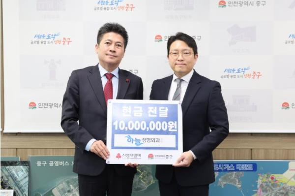 인천시 중구는 중산동 소재 하늘정형외과의원이 연말을 맞아 중구의 복지사업을 지원하기 위해 현금 1,000만 원을 기탁했다고 26일 밝혔다.
