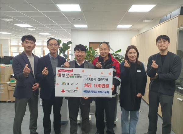 예천군기독공직자신우회 회원들은 26일 예천군청을 방문해 성금 100만원을 기탁했다.