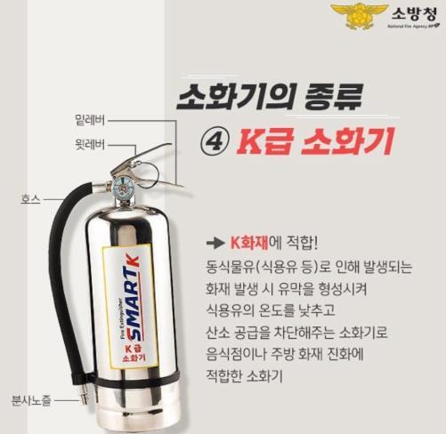 이에 소방서는 음식점이나 다중이용업소 등을 대상으로 K급 소화기 비치를 당부하고 있다.