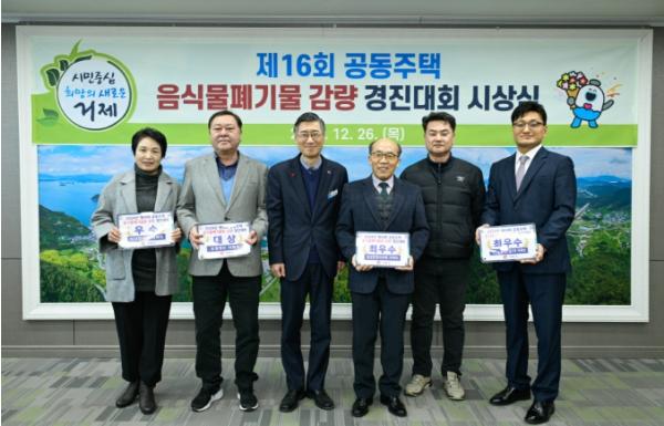 거제시는 26일 시장실에서 우수공동주택 4개소 관리소장 및 입주자대표가 참여한 가운데 ‘제16회 음식물류 폐기물 감량 경진대회 시상식’을 개최했다.