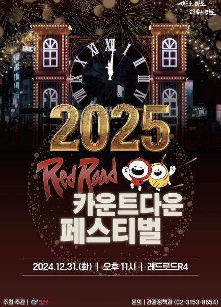 서울특별시 마포구는 ‘함께하는 레드로드, 희망찬 새해로’를 주제로 2024년 12월 31일 밤 9시부터 다음날 새벽 12시 30분까지 레드로드 R4에서 ‘2025년 레드로드 카운트다운 행사’를 개최한다.