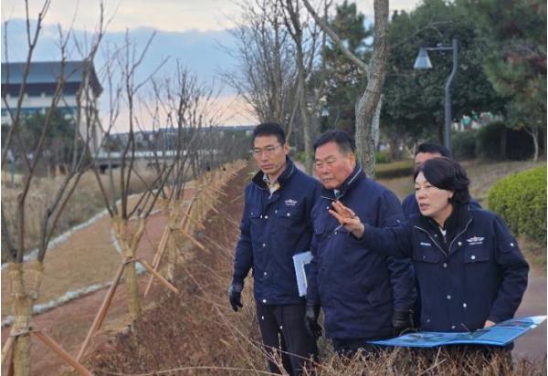 김산 무안군수는 지난 23일 역점적으로 추진 중인 남악 복합놀이시설과 도시 숲 조성 현장을 방문하여 겨울철 공사 진행 상황을 직접 점검했다.