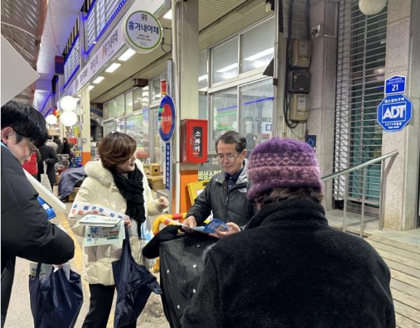 이날 직원들은 시장을 방문한 도민들에게 △가까운 거리 걷기 △폐기물 배출·소각량 줄이기 △전력 낭비하지 않기 등 생활속 실천사항을 안내하며 맑은 하늘을 만들기 위한 계절관리제 동참을 요청했다.