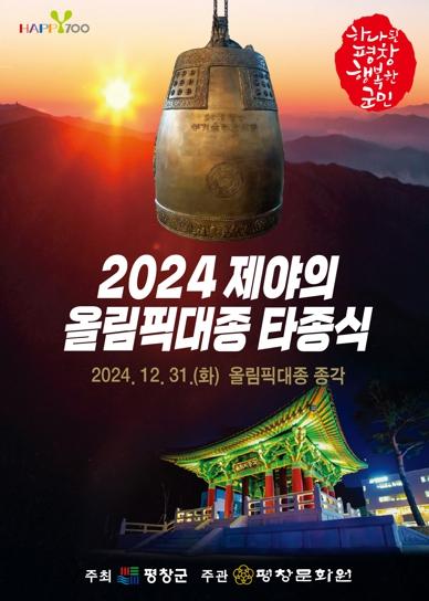 평창군과 평창문화원은 31일 22시 30분부터 2024년 갑진년을 마무리하고 희망찬 2025년 을사년 새해를 기원하는 2024 제야의 올림픽 대종 타종 행사를 개최한다.