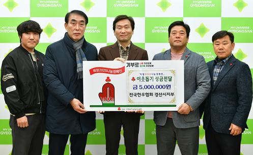 전국한우협회 경산시지부는 12월 27일 경산시청을 방문해 어려운 겨울을 보내고 있는 이웃들을 위해 사용해 달라며 이웃돕기 성금 500만 원을 기탁했다.