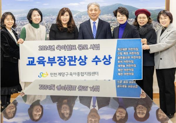 인천광역시 계양구가 보건복지부와 한국보육진흥원(중앙육아종합지원센터) 주관 ‘2024년 육아쉼표’ 사업에 참여해 그간 추진 성과를 인정받아 교육부 장관상을 수상했다고 밝혔다.