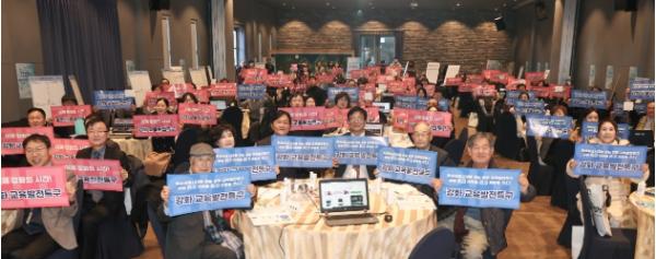 도성훈 교육감, 박용철 강화군수, 학부모 등 200여 명이 참석한 이번 성과공유회는 팝페라 라루체의 오프닝 공연을 시작으로 추진 성과 보고, 우수 사례 발표, 교육공동체 분임별 토론회 및 결과 공유 등 지역-지자체-교육청의 협력을 강화하고 발전 방안을 모색하는 시간을 가졌다.