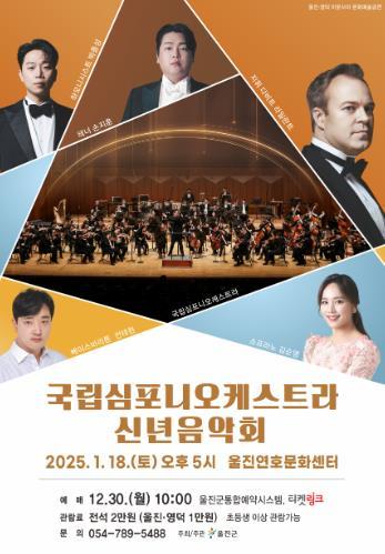 울진군은 신년을 맞이하여‘국립심포니오케스트라 신년음악회’를 오는 1월 18일 오후 5시 울진연호문화센터에서 개최한다.