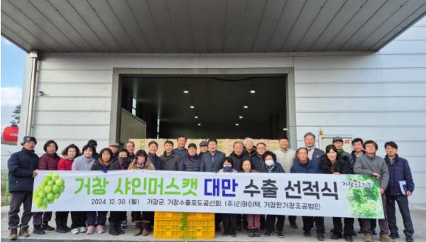 거창군은 30일 서북부경남거점산지유통센터(APC) 포도 선별장에서 2024년 수확한 고품질 샤인머스캣을 대만으로 수출하는 선적식을 가졌다.
