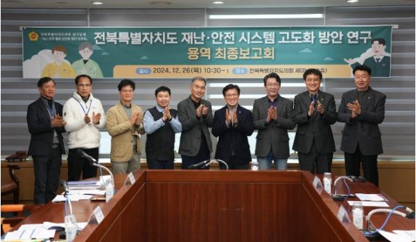 전북특별자치도의회 의원연구단체인 재난ㆍ안전 행정 선진화 방안 연구회는 26일 ‘전북특별자치도 재난·안전 시스템 고도화 방안 연구’ 용역 최종보고회를 개최했다.