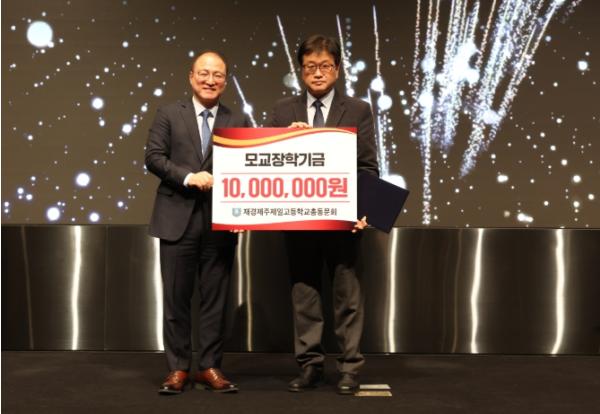 제주도교육청 제주제일고등학교 재경 총동문회가 6일 서울 양재 엘타워에서 열린‘제35회 일고인의 밤’행사 이후 최근 모교의 발전을 위해 학교발전기금 1천만 원을 기탁했다.
