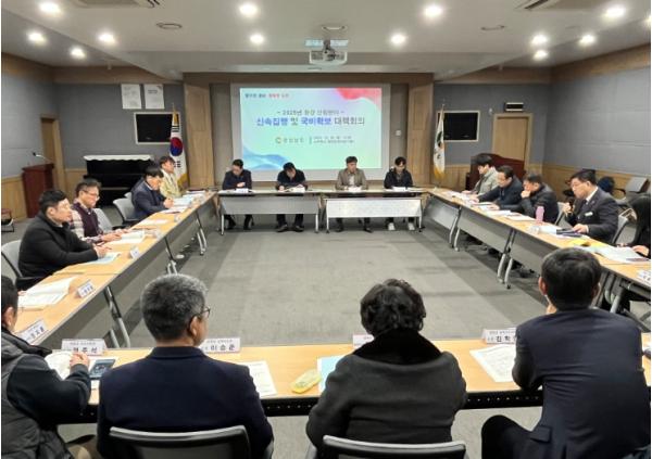 또한, 2025년 정부예산이 확정됨에 따라 국회단계 증액요구 사업 등 미반영 사업내역에 대한 향후 대책을 강구하고, 2025년 정부 추경예산안 편성에 대비하여 환경·산림 분야의 각 시군별 주요 사업 및 필요 예산을 파악하는 등 국비 확보 선제적 대응 방안을 논의했다.