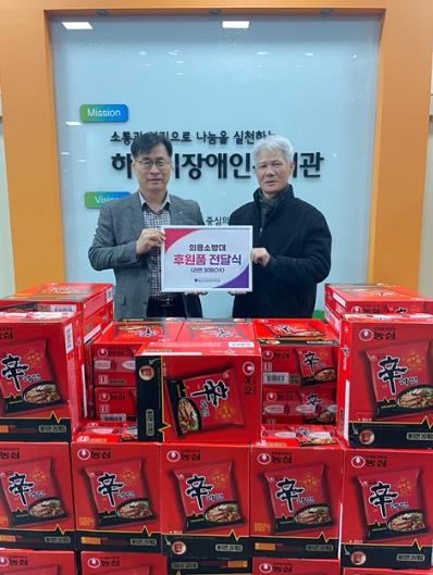 지난 12월 20일, 미사남성의용소방대에서 하남시장애인복지관에 장애인가정의 따뜻한 겨울나기를 위해 라면 30박스를 기부했다.