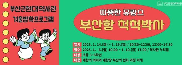 부산근현대역사관은 오는 1월 14일부터 19일까지 역사관에서 초등학생 3~6학년을 대상으로 겨울방학 프로그램 '따뜻한 뮤캉스'를 운영한다고 밝혔다.