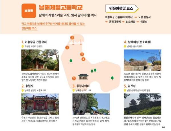 소책자에는 지역 문화적 특색을 담은 길, 근현대 인물의 가치와 지역 정신을 담은 길, 지역 생태·지리적 환경의 인문 자원을 반영한 길, 지역의 음악·미술 자원을 담은 길, 지역 고유의 가치를 담은 길 등 지역별 인문 여행길을 소개하고 경로별 지도와 사진, 체험 정보를 담았다.