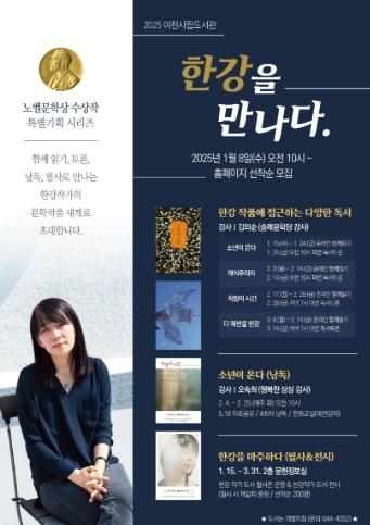 이천시 시립도서관은 한강 작가의 노벨문학상 수상으로 인한 독서 열풍을 이어가고자 한강 작가의 작품을 시작으로 노벨문학상 수상 작가 관련 프로그램을 연중 기획 운영할 예정이다.