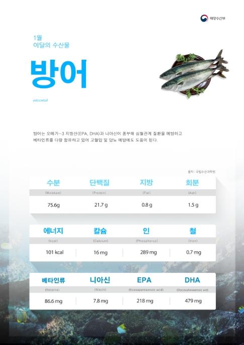 해양수산부는 1월 이달의 수산물로 방어, 송어를 선정했다.