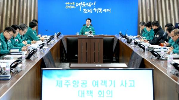 김영록 전라남도지사는 3일 도청 재난종합상황실에서 제주항공 여객기 사고 대책회의를 열어 피해자 가족 중 장례 이후에도 도움이 필요한 분들에 대한 돌봄 등 지원이 지속되도록 하고, 가족 지원에 최선을 다할 것을 지시했다.