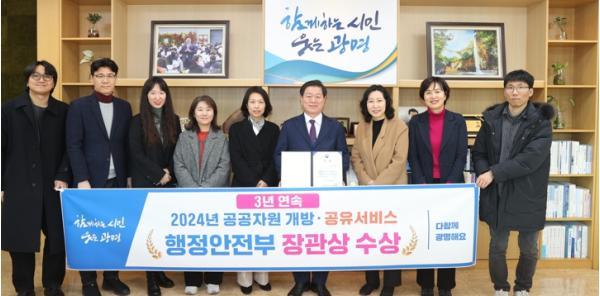 광명시, 공공자원 개방·공유서비스 평가 3년 연속 행정안전부장관상 수상