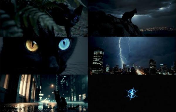 먼저 리더 필름 영상에는 검은 고양이가 비 내리는 숲속에서 걸어 나와 천둥 치는 도시 한복판에 멈춰서는 모습이 담겼다.