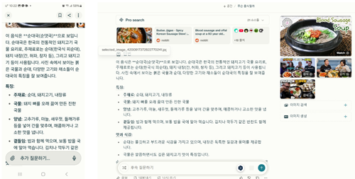 | ▲ 퍼플렉시티의 순대국밥 인지테스트 (좌=모바일, 우=PC) |