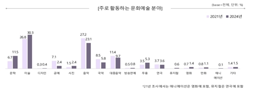 문화체육관광부(장관 유인촌, 이하 문체부)가 한국장애인문화예술원(이사장 김형희), 한국문화관광연구원(원장 김세원)과 함께 ‘2024년 장애예술인 문화예술활동 실태(2021~2023년 기준)’를 조사한 결과, 장애예술인이 최근 3년간 작품을 발표하거나 작품에 참여한 평균 횟수가 40% 이상 증가한 것으로 나타났다. 이번 조사는 「장애예술인 문화예술활동 지원에 관한 법률」 제8조를 근거로 ’21년 이후 두 번째로 이루어진 조사다.