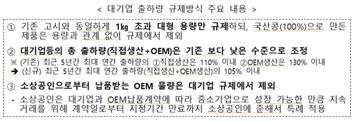 우선, 규제 대상은 소상공인들이 주로 영위하는 대형 용량(1㎏ 초과) 제품으로 한정하되, 국산콩으로 만든 두부는 용량과 관계없이 규제 대상에서 제외한다.