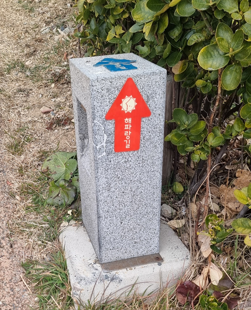 오후 1시경부터 빗방울이 떨어지기 시작했다. 광안리 해변을 지날 때쯤 빗줄기가 더욱 굵어졌지만, 덕분에 한적한 해변 풍경을 온전히 감상할 수 있었다. 길 곳곳에서 마주하는 해파랑길 이정표는 방향을 안내하며 길을 걷는 데 도움을 주었다.