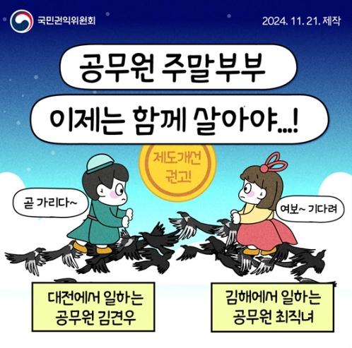 근무자가 달라 배우자와 함께 거주하는 것이 어려워 자녀계획을 미루거나 홀로 육아를 감당하고 있는 맞벌이 공무원의 이야기를 들어보셨나요?