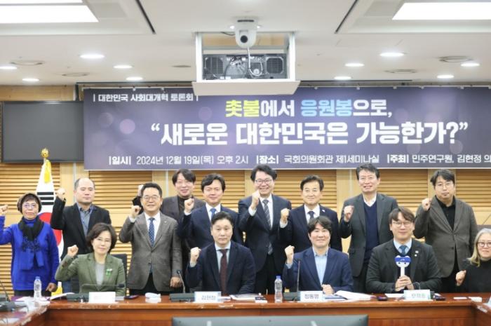 19일 오후 2시 국회의원회관 제1세미나실에서 민주연구원과 김현정 의원실이 공동으로 주최한 ‘촛불에서 응원봉으로, 새로운 대한민국은 가능한가?’대한민국 사회대개혁 토론회를 성황리에 개최했다.