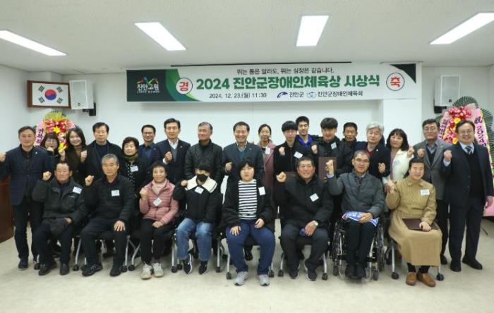 • 진안군은 23일 진안고원 역도훈련장에서 ‘2024년 진안군 장애인체육상 시상식(진안군장애인체육회 주최/주관)’이 개최됐다고 밝혔다.
