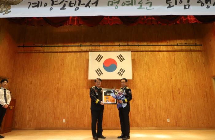 계양소방서는 23일 본서 강당에서 차상철 소방령(예방안전과장)의 35년 공직생활을 마무리하는 퇴임식을 개최했다고 밝혔다.