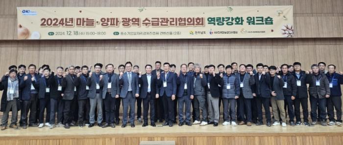 지난 18일에는 마늘·양파 생산자단체, 자조금협회, 시군 주산지 농협 등 80여 명이 참석한 가운데 마늘?양파 광역 수급관리협의회 워크숍을 열었다. 2025년산 마늘·양파 정책 방향과 정부의 농업수입안정보험 정책, 이춘수 순천대 교수의 ‘농산물 가격 특징과 농업인의 대응전략’ 설명을 듣고 수급안정 대책을 논의했다.