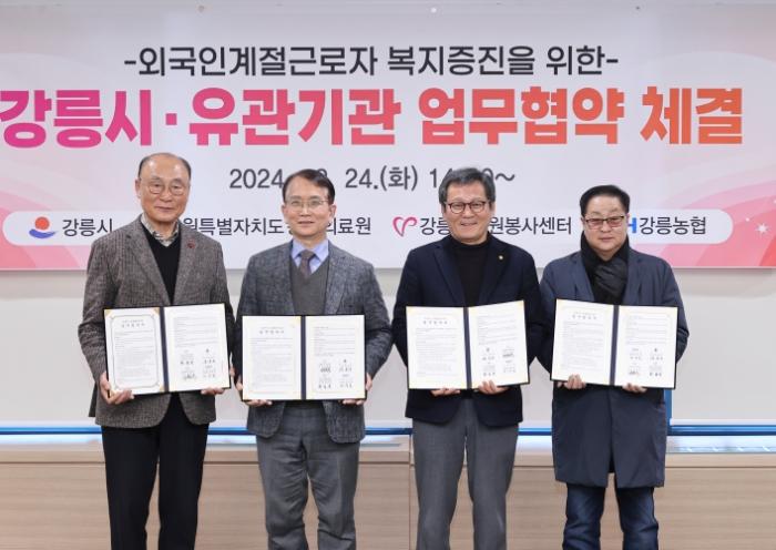 협약식에는 김홍규 강릉시장, 김종욱 강릉의료원장, 최길영 강릉시 자원봉사센터 이사장, 최장길 강릉농협 조합장을 비롯한 10여 명이 참석하여 외국인 계절근로자 복지증진을 위한 협력체계 구축에 나선다.