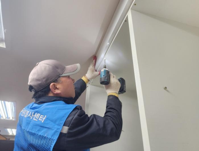 센터는 열악한 주거 취약계층을 발굴해 맞춤형 싱크대, 붙박이 수납장, 도배, 장판 교체 등 나눔 봉사 활동을 펼쳤다.