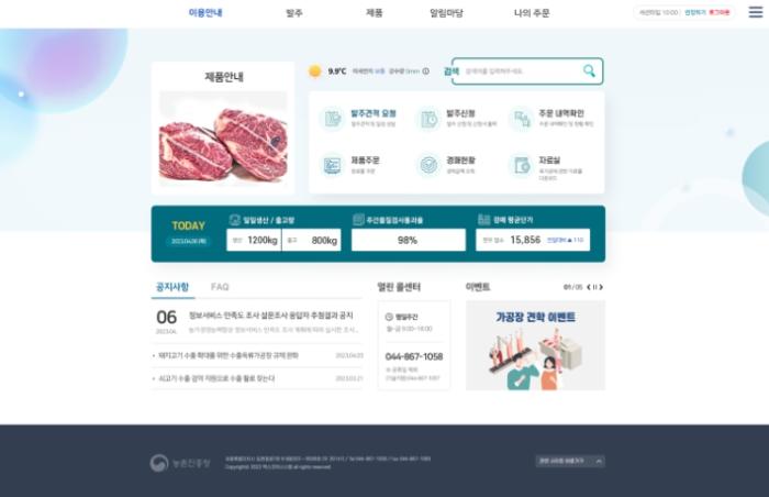 한우고기 가공장 실시간(스마트) 생산관리 시스템에서는 한우고기(지육) 입고부터 부분육 포장 처리 실적 신고, 반출신고 현황 등 정보를 실시간 확인할 수 있다.