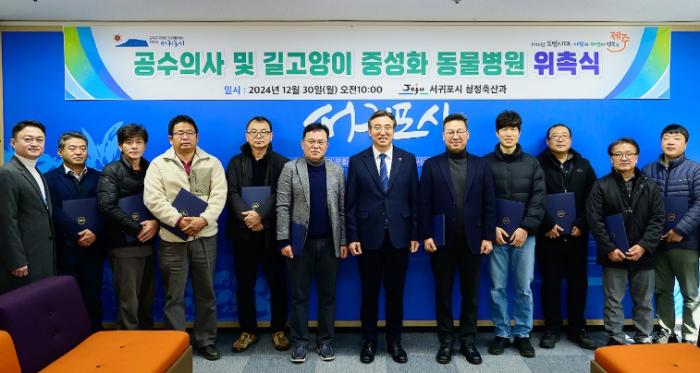 서귀포시는 2025년에도 악성가축전염병 차단방역 시스템 구축과 축산농가별 맞춤형 방역서비스 제공을 위한 공수의사 및 길고양이 중성화 지정 동물병원을 선정해 12월 30일 위촉장을 전달했다.