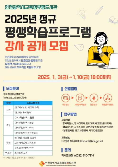 • 인천광역시교육청부평도서관, 2025년정규 평생학습프로그램 강사 공개 모집